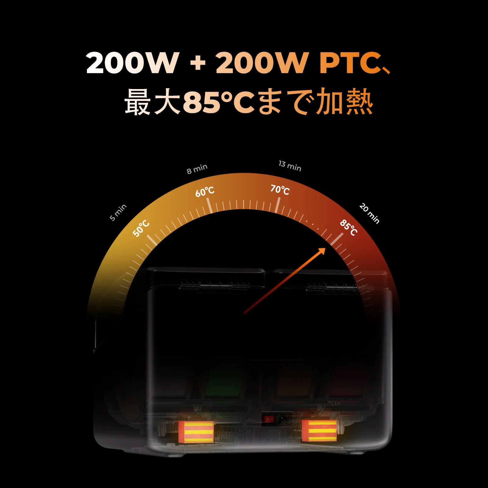 ■ 200W+200W PTCヒーター搭載(最大85℃)