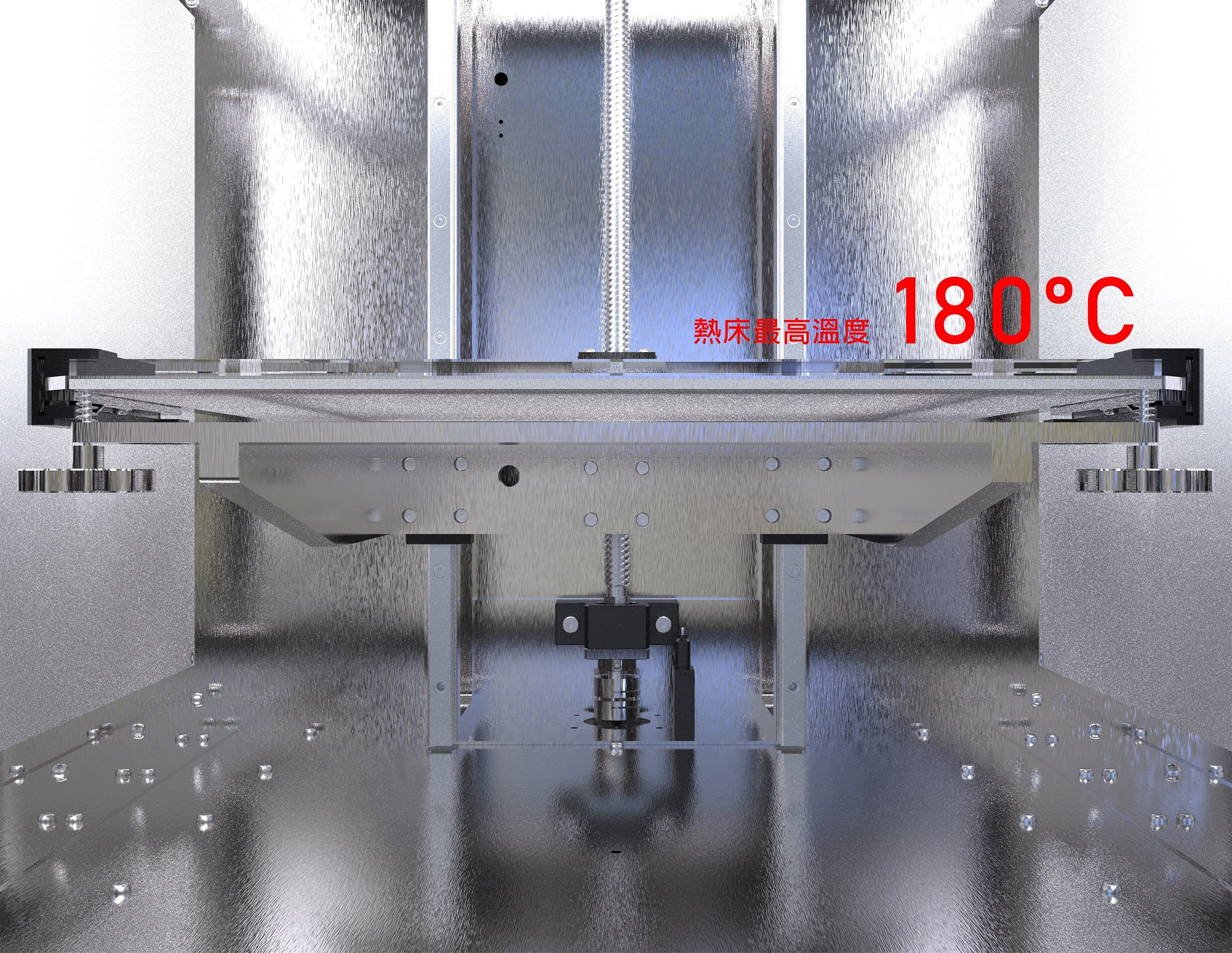 ・ プラットフォームはセラミックガラスの造形プラットフォームで180度まで上げることが出来るため、殆どのフィラメントを利用することが可能。
