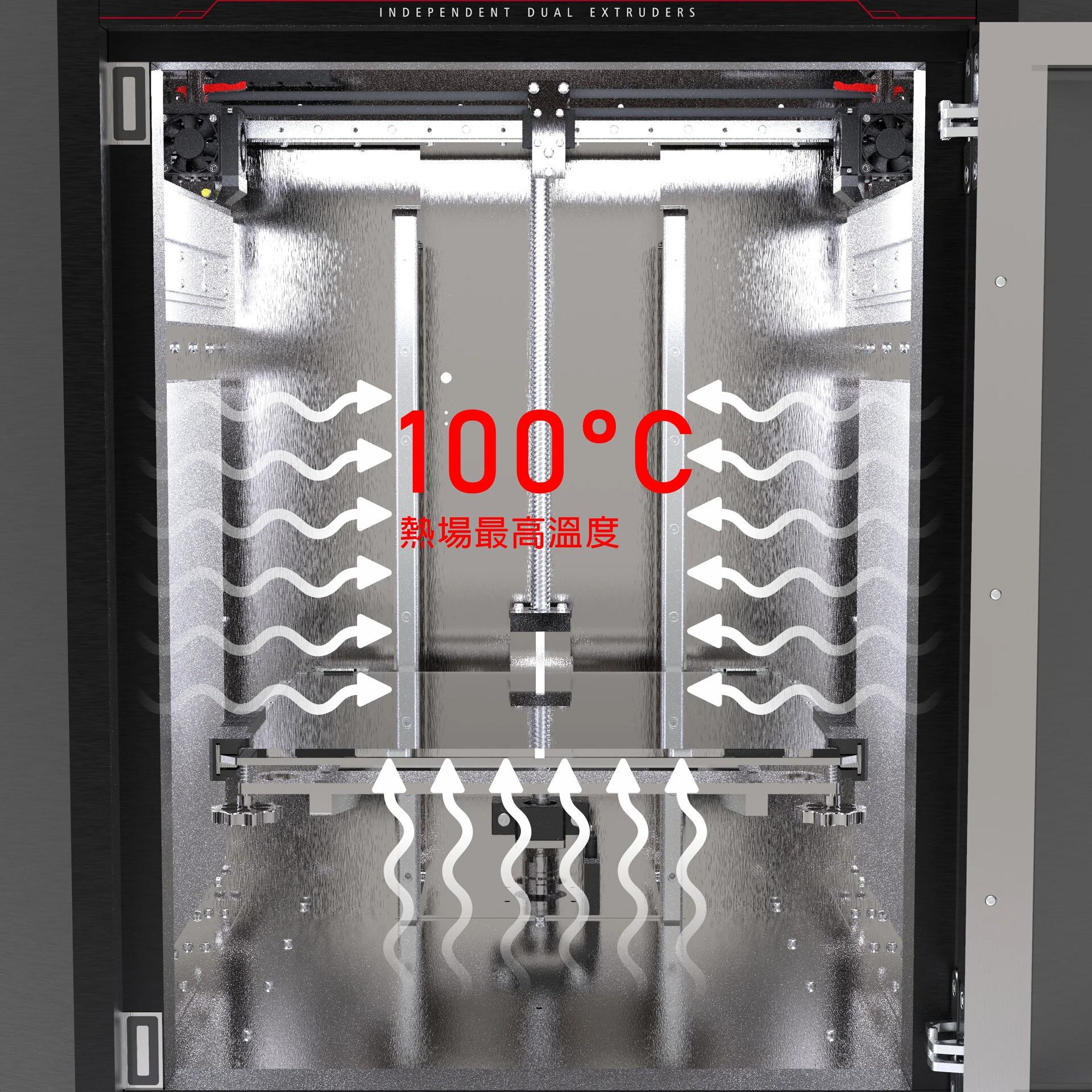 「Infinity X3 Pro」は、デュアルノズルにチャンバー機能を搭載した大型3Dプリンターで、PEEKなどのスーパーエンプラに対応。