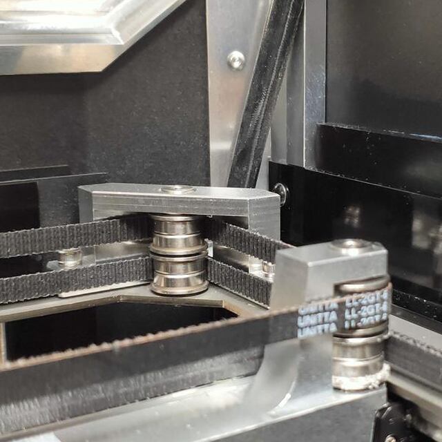 CORE XY機構にとって重要なベルト調整により、安定的な出力を実現。ベルトの張りはスマホのチューニングソフトを使って調べられるため、どなたでも簡単にベストな張り具合を確認することが出来ます。